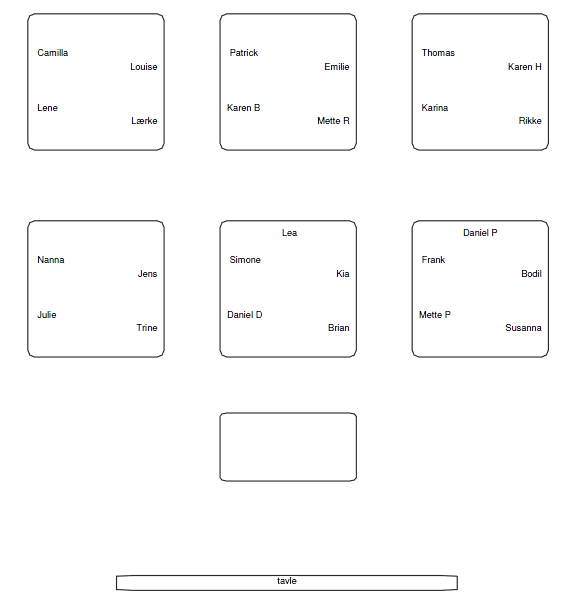 - Lav en plan over bordopstillingen i lokalet.