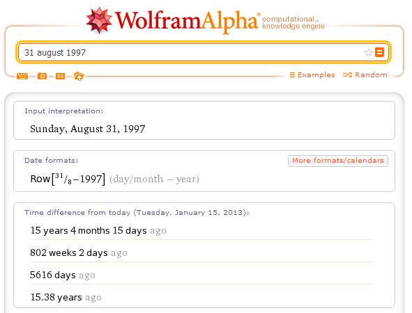 WolframAlpha er et imponerende leksikon, der ved stort set alt. Man kan søge på naturvidenskabelige fænomener, matematiske formler, kendte personer, byer, lande, datoer, årstal og meget mere.