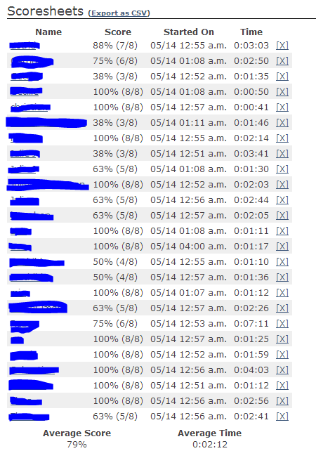 Jeg kan løbende følge med i elevernes besvarelser, og Testmoz laver et fint overblik over svarene: